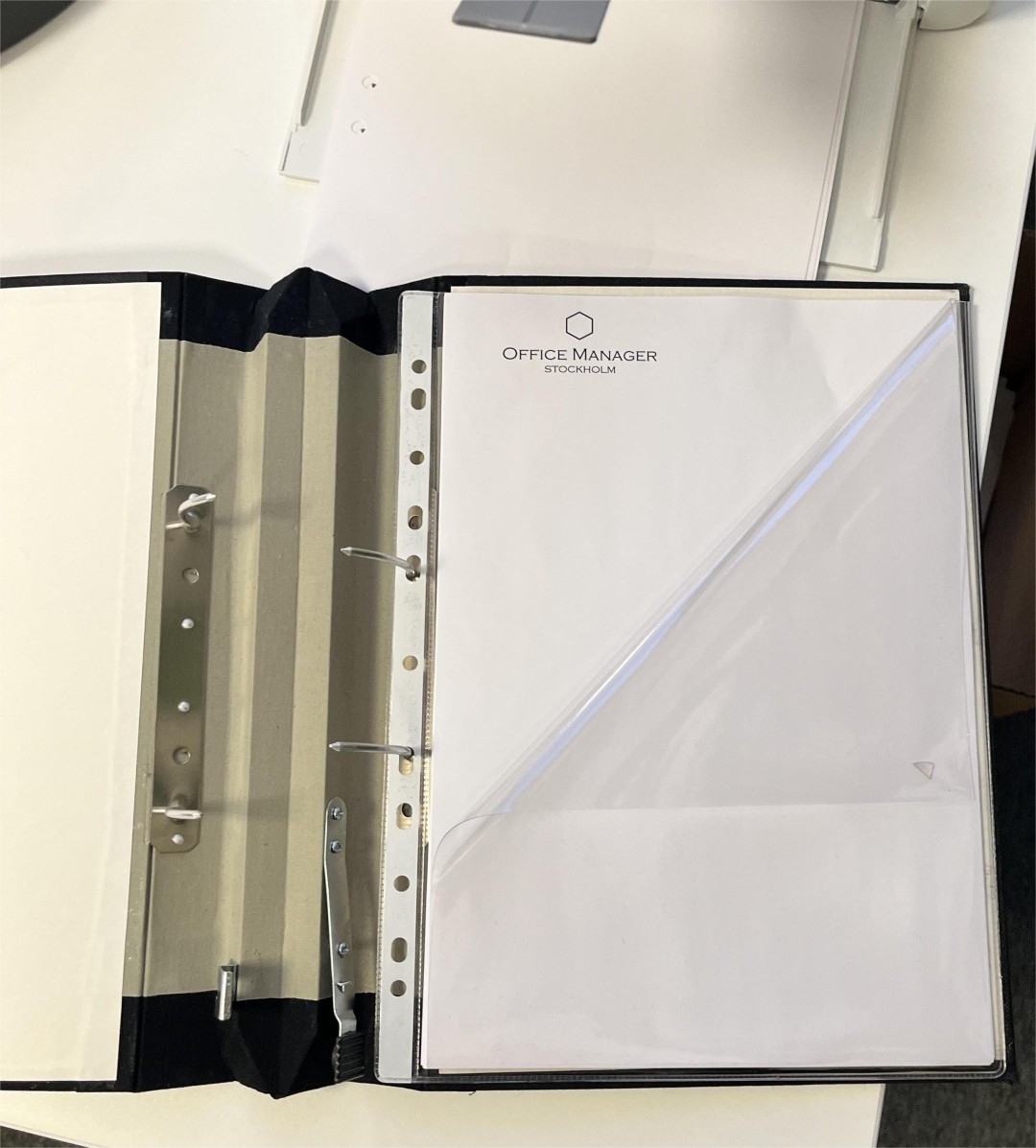 Plastficka anpassad för att förvara allt från ett A4-ark till en större bunt papper. Med hållist för att sättas i pärm, A4.