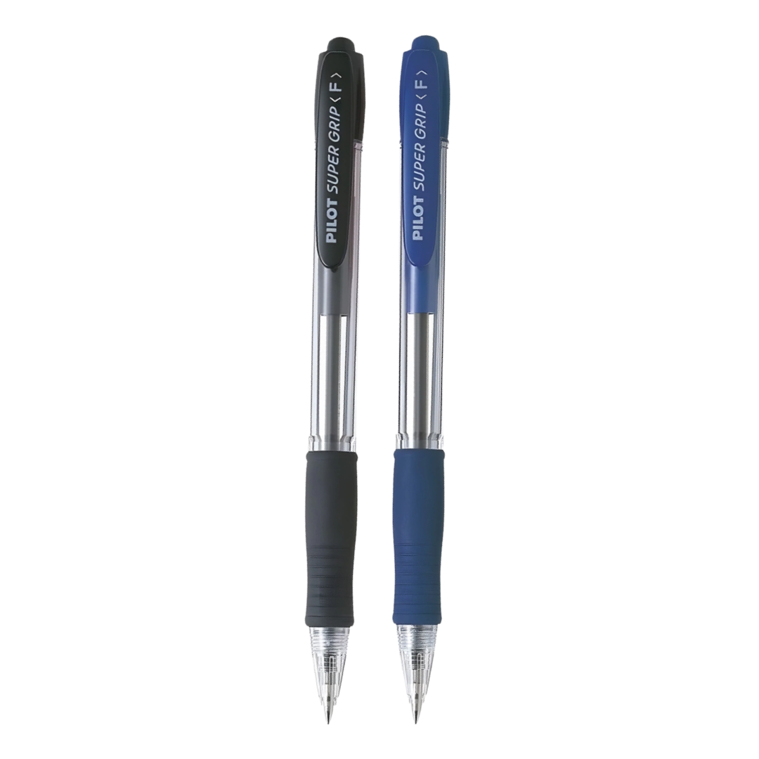 Pilot Super Grip F är en kulspetspenna med klickmekanism och färgbeständigt oljebaserat bläck. Den 0,7 mm tunna spetsen i kombination med bläcket ger en fantastisk skrivupplevelse. Pennans kula är av hållbar metall. Pilot Super Grip F är bekvämt formad med fingergrepp av gummi och en klämma.