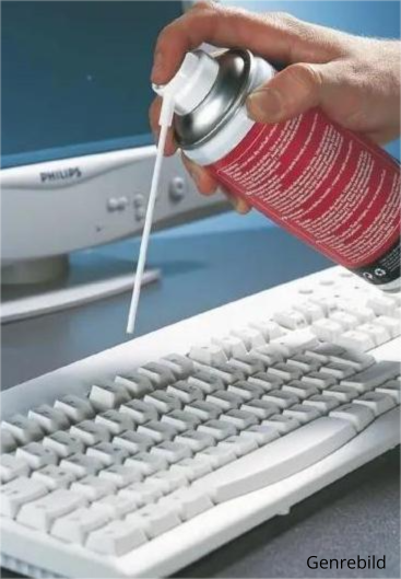 Tryckluft för rengöring av känsliga eller svåråtkomliga ytor. Blåser bort damm och smuts från tangentbordet m.m. Med förlängningsrör. Är HFC-fri. Skydda från solljus.
